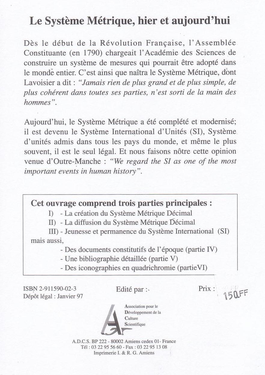 le Système Métrique, dont Lavoisier a dit : "Jamais rien de plus